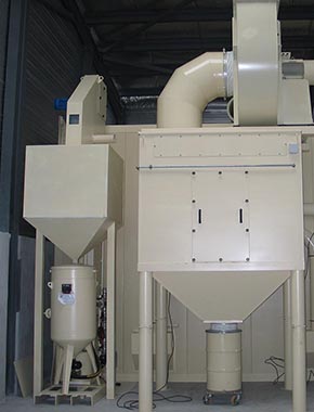 Diese Reihe von ''DEP-CAB''-Staubabsaugern eignet sich für die Behandlung von Staub aus Kugelstrahlen, Pulvern, Schleifen, Kunststoff, Papier, Korund, Glas... Aufgrund seiner Konstruktion aus 3 und 5 mm Stahl eignet er sich besonders für die Behandlung von abrasivem Staub. Es ist in allen unseren verschiedenen Kabinen installiert und kann verwendet werden, um vorhandene Staubabscheider in Ihren Einrichtungen zu ersetzen. Mit einem robusten und kompakten Design kann der Entstauber je nach zu behandelndem Luftstrom einzeln oder in Gruppen verwendet werden. Der Lüftermotor mit Leistungen von 7 kW bis 200 kW ist auf dem Dach positioniert. Der verarbeitete Durchsatz liegt zwischen 9.000 und 240.000 m3/h.